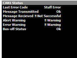 CAN Diagnostics information can be found under the Communications Tab in the Runtime (F3) menu.