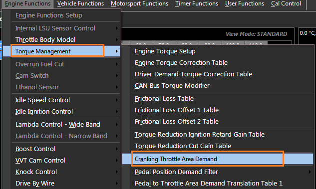 This table is available from the Engine Functions -> Torque Management -> Cranking Throttle Area Demand menu.