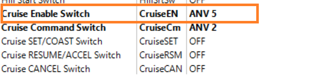As the Enable Sw is disabled within the "Cruise Command Switch" channel in the above example, it allows the dedicated "Cruise Enable Switch" channel to be used.