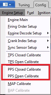 2) Automatic Calibration. Use the PP Closed/Open Calibration menu to automatically set these voltages. This can be access from Config View-> Engine Setup as shown.