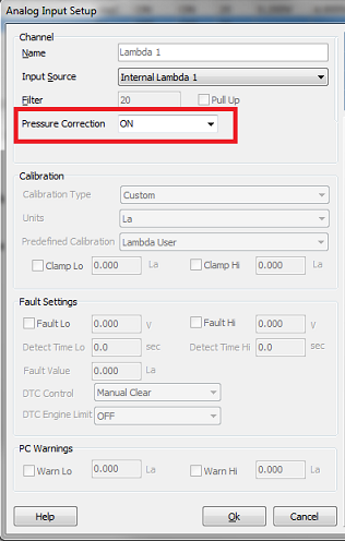 The ECU can applied EMAP correction when enabled. This ONLY applies when the Internal LSU4.9 control is used. This correction is not available to data on Analog inputs or CAN channel as it requires precise correction the sensors Pump Current.