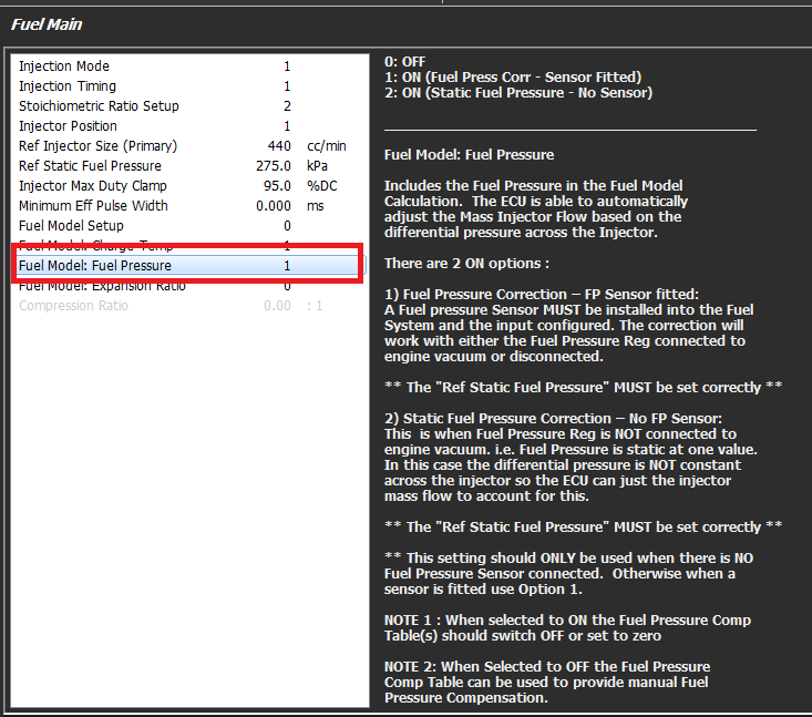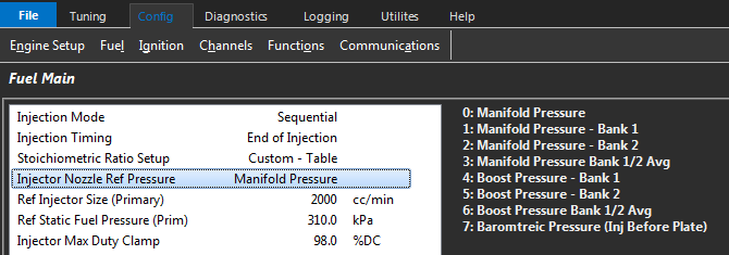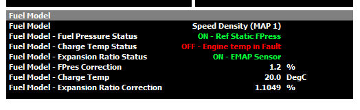 10) Locked inputs Manifold Pressure and Fuel Pressure to units of kPa.