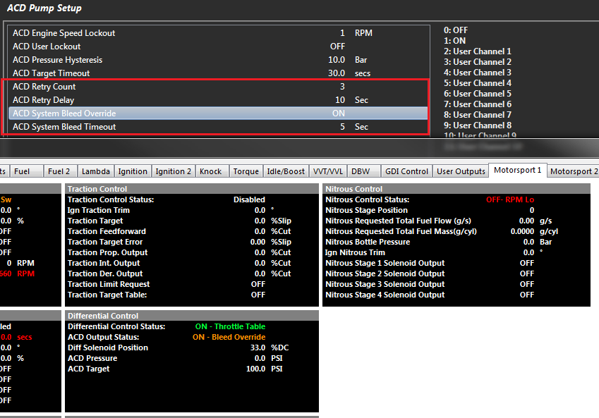 1) Differential Control function added **THIS SETTING WILL NEED TO BE INITIALISED WITH VALID VALUES. IN THE CONFIG VIEW -> FUCNTIONS -> MOTORSPORT TAB MAKE SURE THE FUNCTION IS OFF ***