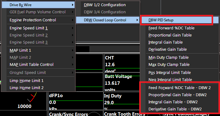 3) Fuel Cylinder Bank trimming is implemented on Cylinders 1-12. Cylinders can be assigned to Bank 1 or Bank 2 from the Config View -> Engine Setup menu. Normal Table Control is used to control this function, adjusted from Tuning View Fuel ->Fuel Table Control menu. Bank Cylinder Trims are also given in the Runtime Display(F3)