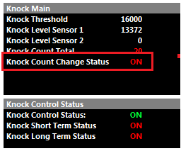1) Knock Control Gain control for Knock Levels and Thresholds.
