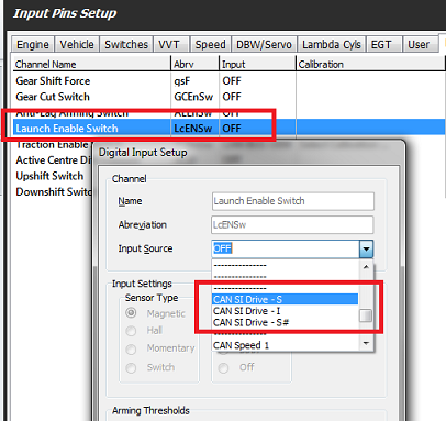 2) Input Channel "Front Brake Pressure" now accepts data over the CAN bus i.e Subaru MY12