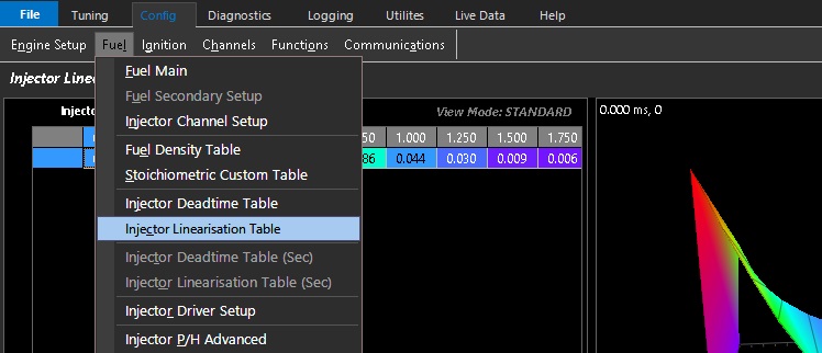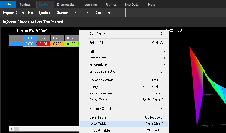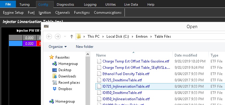 The Emtune software has commonly used Injector Linearisation Tables available in it that are only a right click of the mouse away