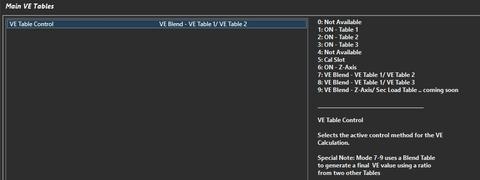 TuningFuel VE Blend Table VE Blend Table VE Blend Table can be enabled under Fuel Table Control : Tuning -> Fuel -> Fuel Table Control VE Blend can blend only two VE tables at a time. Units are 0-100% 0% = First VE Table 100% = Second VE Table