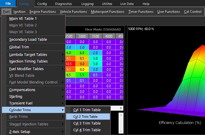 TuningFuel Cylinder Trims Cylinder Trims Cylinder Trims can be enabled for each cylinder to adjust a percentage of fuel mass adjusted +/- in a 3D table