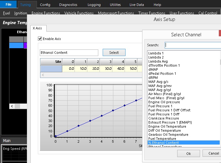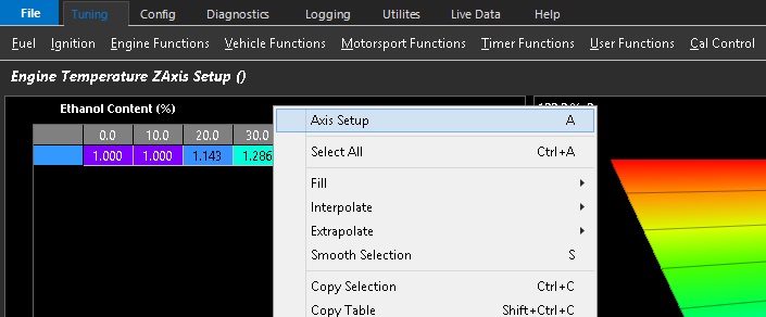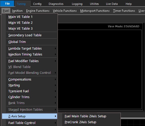 The available Fuel Z-Axis table functions are enabled via Fuel Table Control
