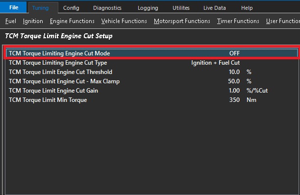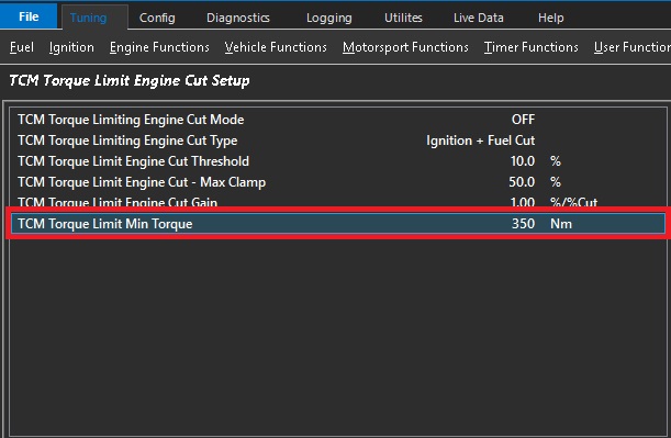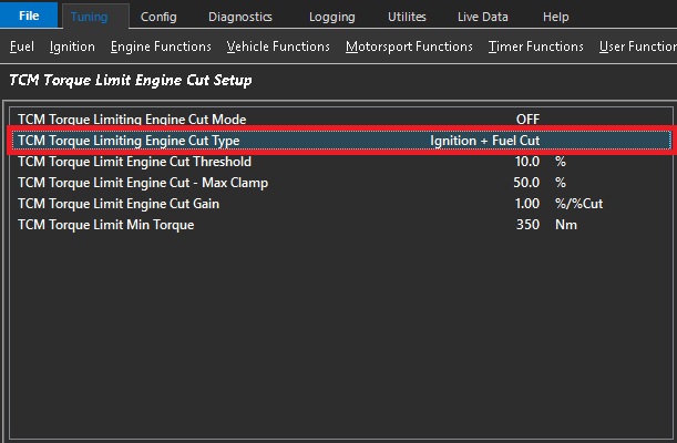 TCM Torque Limit Engine Cut Setup