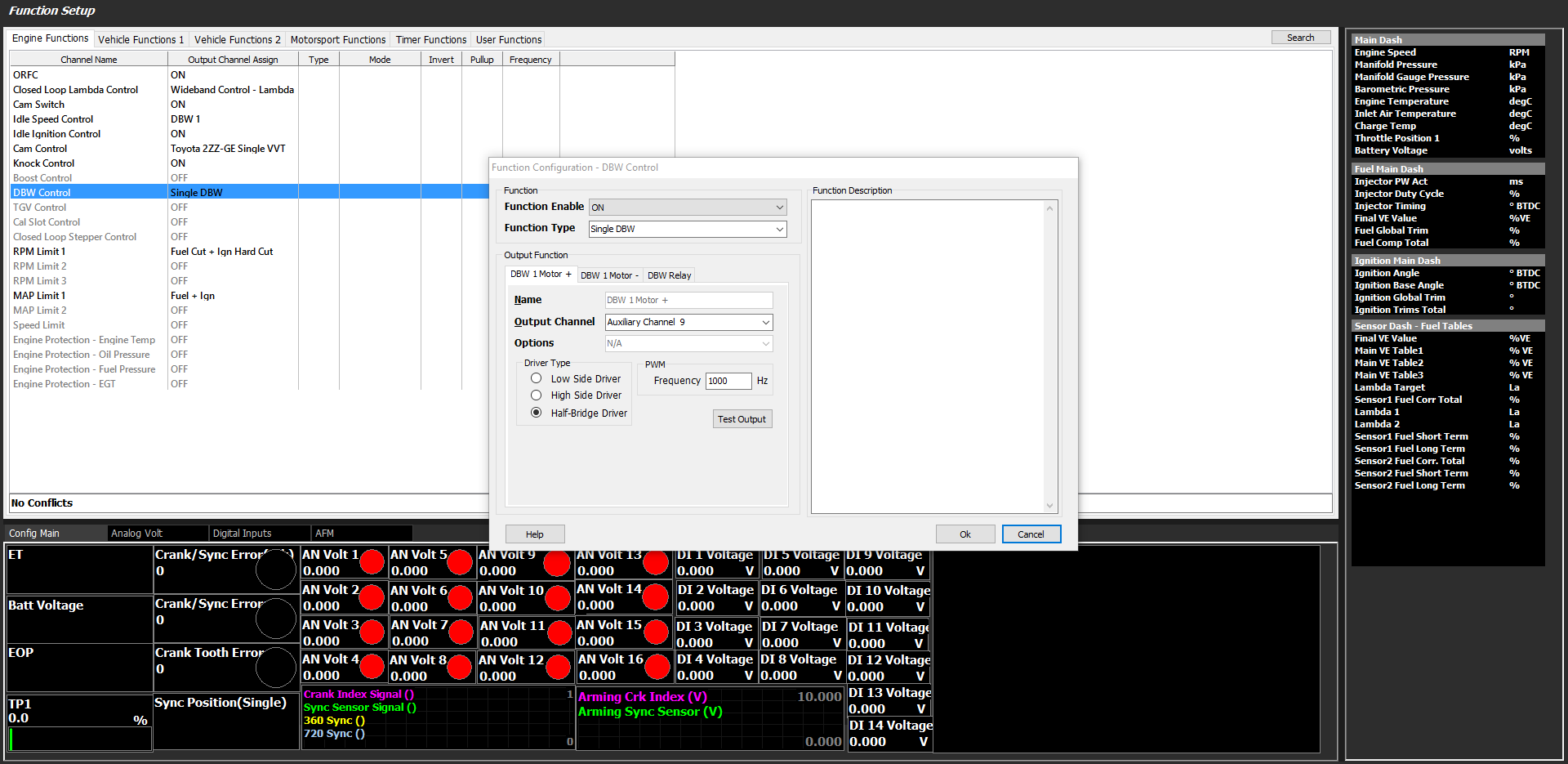 This comprehensive setup will specify all Inputs to the Emtron ECU system.