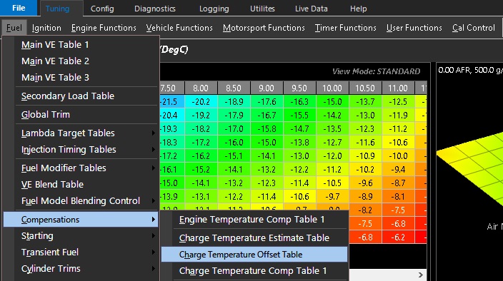 TuningFuelCompensations Charge Temperature Offset Table Charge Temp Offset allows the user to offset the calculated Charge Temperature in a table ** Often used when using different fuel types with higher evaporate properties (Ethanol/Methanol), and flex fuel setup (see Sample File)