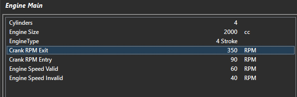 TuningIgnitionStarting Cranking Table Cranking Comp table. Controlled by Cranking Entry/Exit RPM settings under : Config -> Engine Setup -> Cranking RPM Entry/Exit