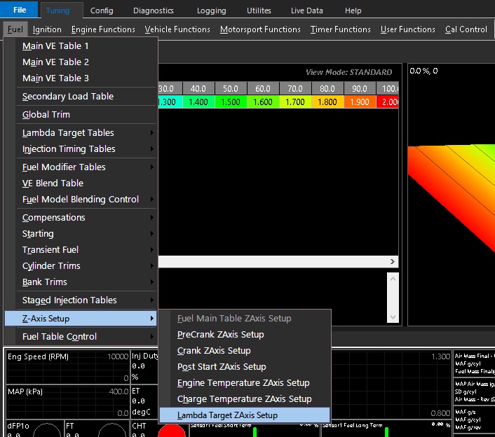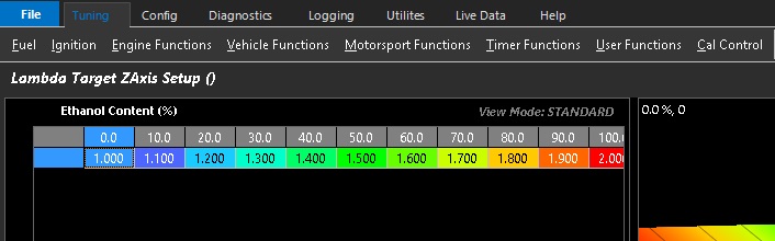TuningFuelZ-Axis Setup Lambda Target Z-Axis Setup Lambda Target Z-Axis Setup The Z-Axis activates a user definable X-Axis to swap or blend between Lambda Target tables based on the selected runtime Lambda Target ZAxis spanned across ethanol content example shown above