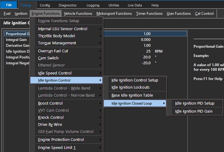 The Emtron ECU adds closed loop correction factors to Idle Speed Ignition functions.