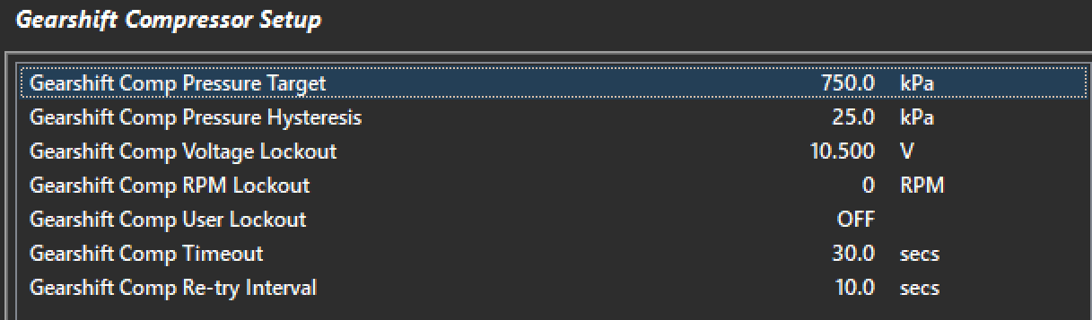 Gearshift Comp Pressure Target