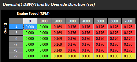 Downshift DBW/Throttle Override Duration Table