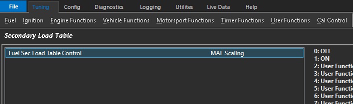 The secondary load table becomes a primary tuning table when linked to the MAF scaling
