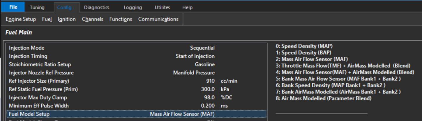 The ECU will search which channel(s) are enabled and use those inputs. "Mass Air Flow Sensor" takes priority over "Mass Air Flow Bank Sensor". For example if both