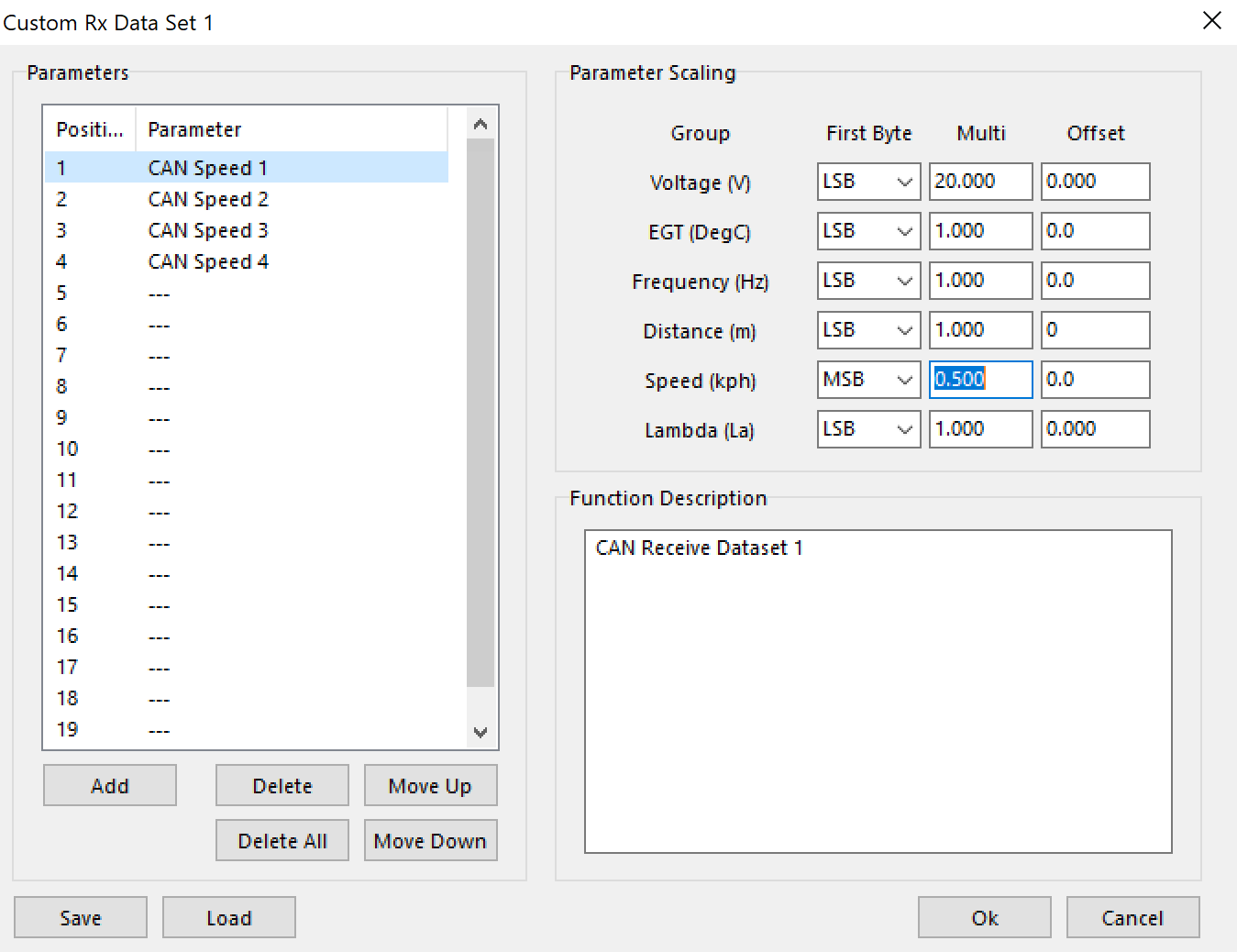 ** Scaling per data set will be fixed. IE - CAN Speed for Data Set 1 must all be the same