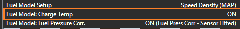 - When this setting is OFF the Air Mass is not modified base on Charge Temp. Instead the Tuning View -> Compensations -> Charge Temp Comp Table 1 can be used to manually correct the fueling based on Charge Temperature.