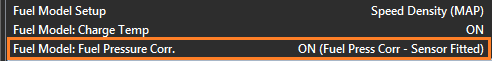 This setting applies to ALL Fuel Models. A Fuel Pressure Sensor MUST be fitted. The ECU will correct/adjust the Injector Flow as the differential pressure across the injector changes. This means any fuel surge causing an sudden drop in fuel pressure the ECU can correct the fueling and maintain the correct mixture.
