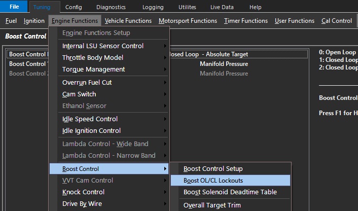 Closed Loop: ECU uses the pressure channel selected in the PID Setup Menu -> Boost 1 PID Input Source