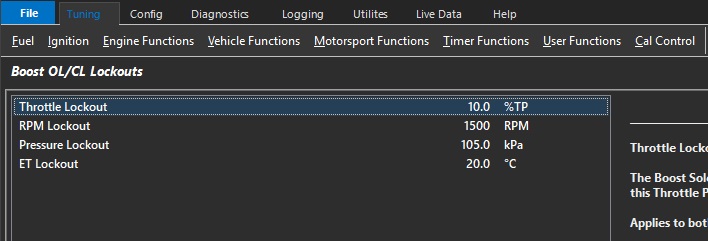 The Boost Solenoid will switch OFF below this Engine Temperature