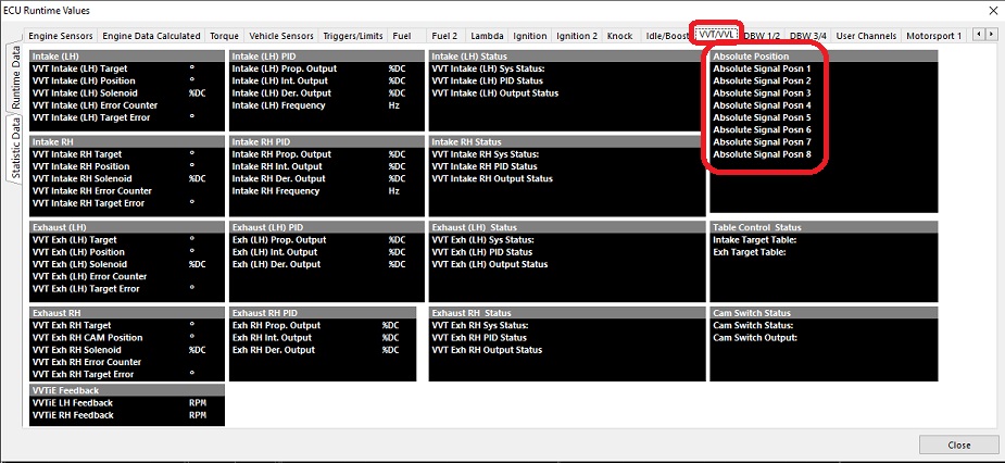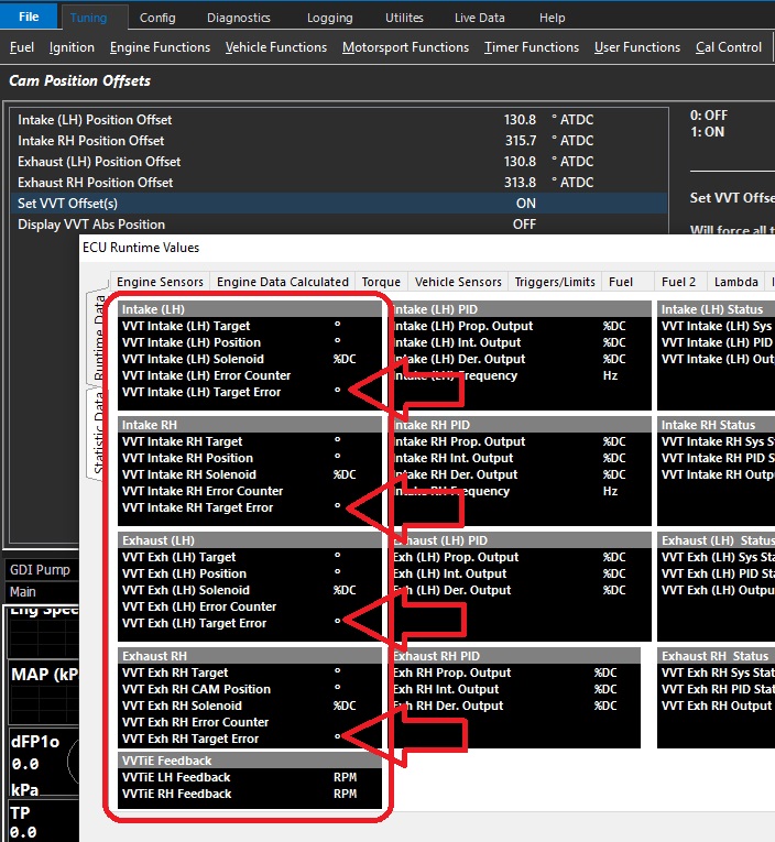 Open ECU Runtimes (F3) go to VVT/VVL