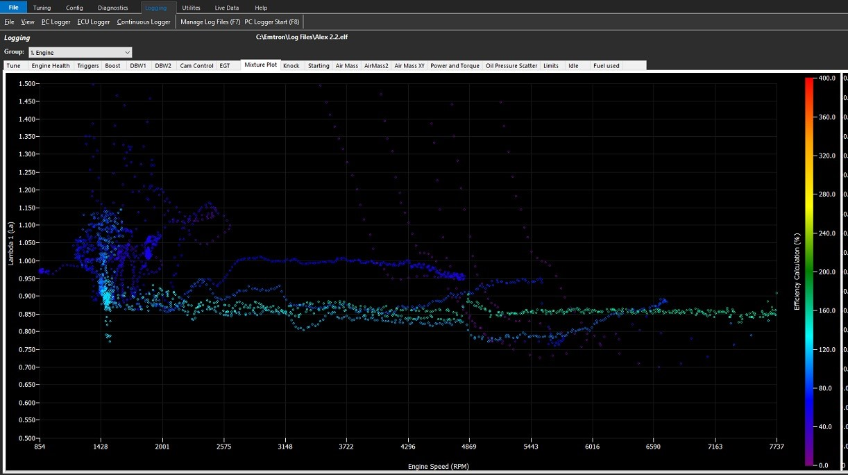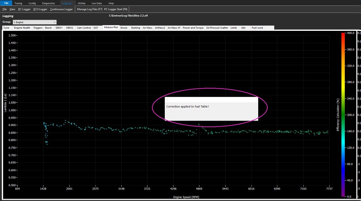 Using the PC logger (F8) the tune can be interrogated against target tune parameters.