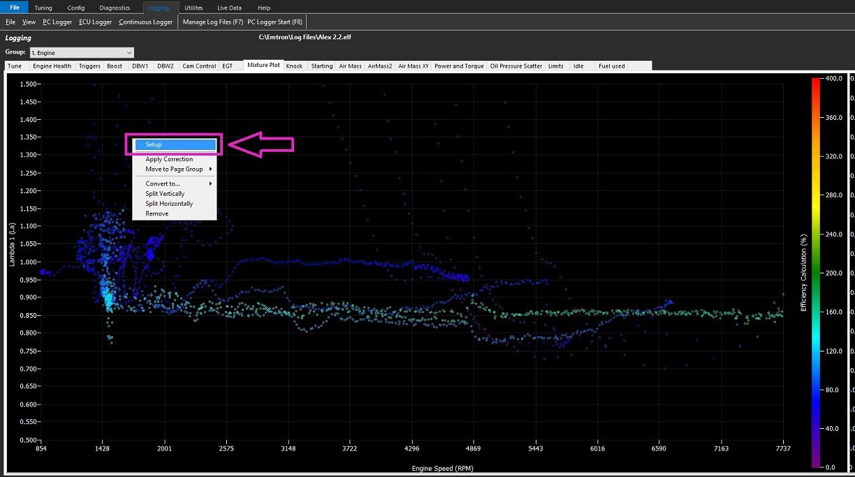 Enter the Scatter Plot Setup (Right Mouse Click)