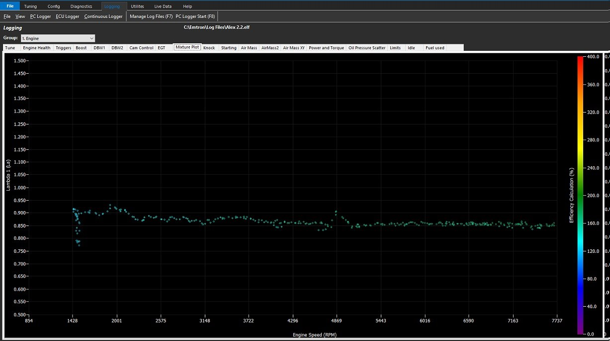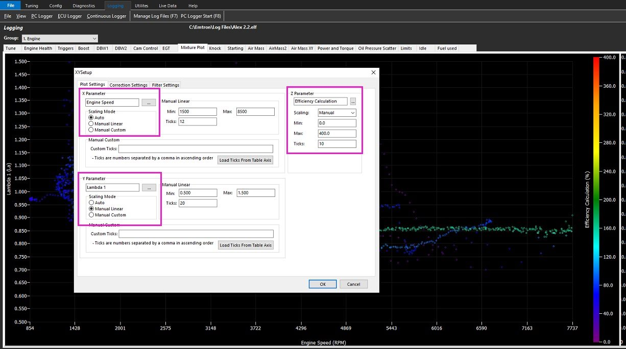 A useful feature of the Emtune logging is the Mixture Scatter Plot.