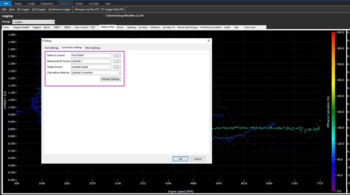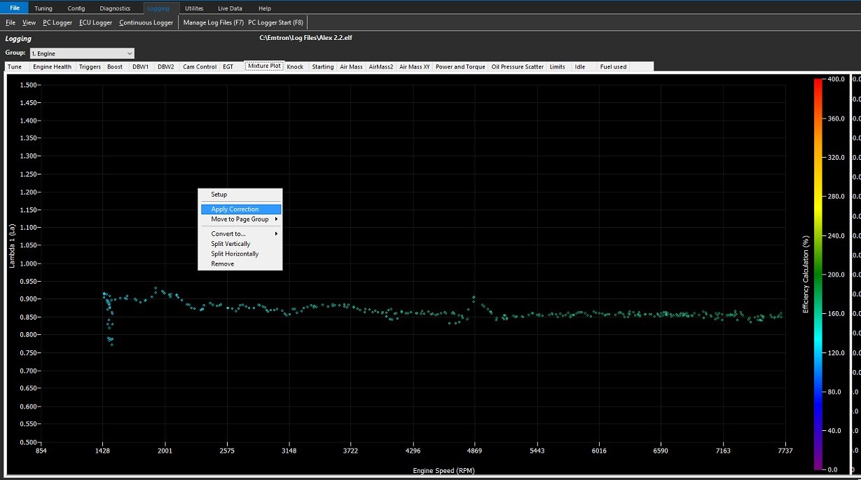 Lambda vs Lambda target can be utilised via “M” - Manual entry lambda correction.