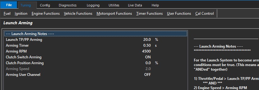 1: All remaining Arming Conditions MUST be satisfied before the Launch Control becomes armed.