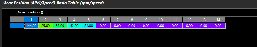 Gear Position (RPM/Speed) Table