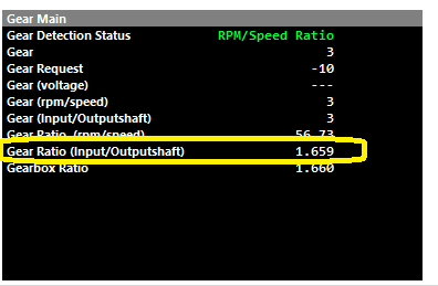 Actual Gear Ratio (Input/Outputshaft) can be validated actively calculated in Runtimes ->