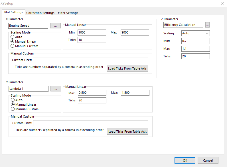 XY Plots have similar settings. Set up X and Y channels. Z channel will be the color channel for the dot plot to populate.