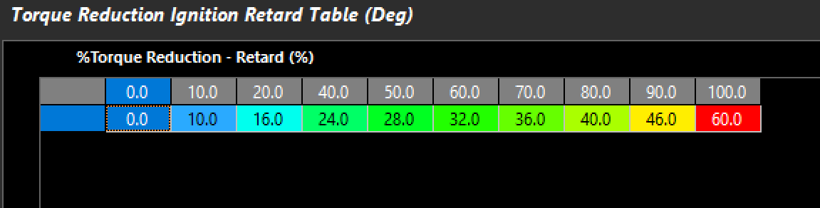 These values need to be validated using a dyno to teach the ECU how much retard will actually reduce torque %