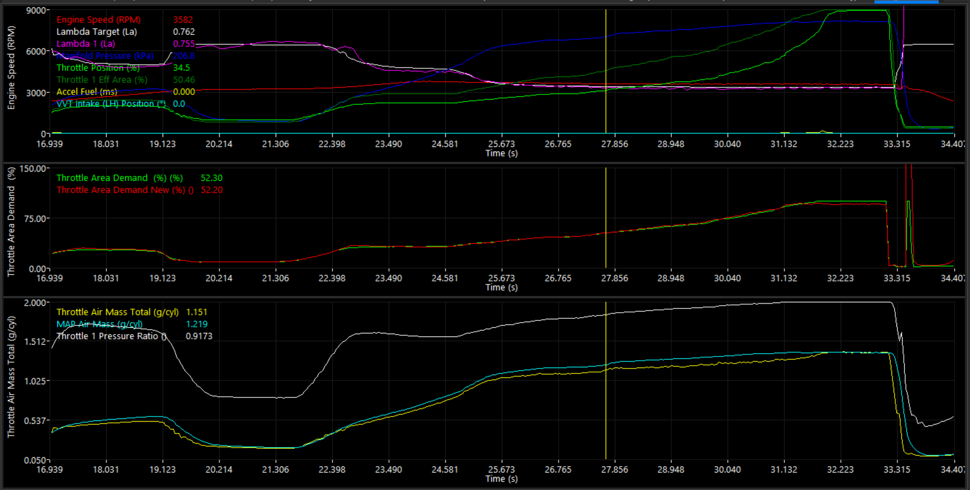 Error in throttle air mass can be corrected in the Throttle Area Table